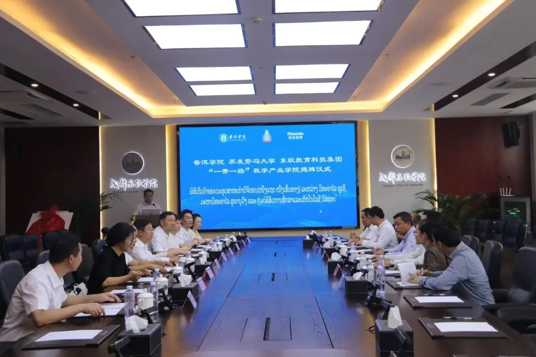 时值共建“一带一路”十周年之际,九州酷游教育科技集团进一步携手普洱学院、老挝苏发努冯大学共同召开“一带一路数字产业学院”揭牌仪式,这是三方自2022年12月12日签署协议共同推进“一带一路”数字产业学院建设后,进一步落实国际化数字人才培养,深化中老命运共同体建设,有助于东盟国家的数字经济开展战略的坚定落地。