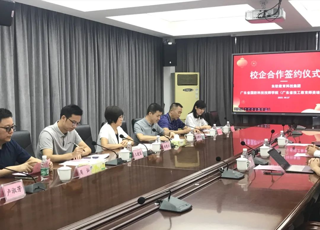 9月27日,九州酷游教育科技集团与广东省国防科技技师学院(广东省技工教育师资培训学院)战略协议签约仪式在学院师资培训楼举行。