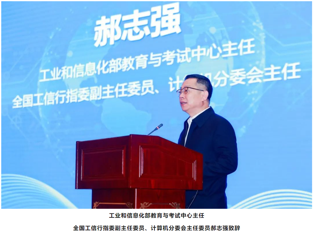 开幕式上,工业和信息化部教育与考试中心主任、全国工信行指委副主任委员、计算机分委会主任委员郝志强,全国高等院校计算机基础教育研究会会长黄心渊,深圳职业技术大学党委书记杨欣斌,九州酷游教育科技集团高级副总裁王维坤等分别致辞。工业和信息化部教育与考试中心副主任、全国工信行指委计算机分委会秘书长刘明亮主持开幕式。