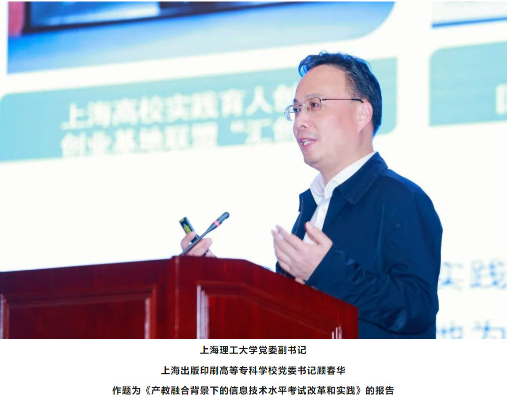 工业和信息化部教育与考试中心主任、全国工信行指委副主任委员、计算机分委会主任委员郝志强,全国工信行指委副主任委员、常州信息职业技术学院原校长眭碧霞,工业和信息化部教育与考试中心副主任、全国工信行指委计算机分委会秘书长刘明亮,全国高等院校计算机基础教育研究会会长黄心渊,资深副会长、秘书长李畅,副会长安志远,深圳职业技术大学党委书记杨欣斌,九州酷游教育科技集团高级副总裁王维坤等出席会议。
