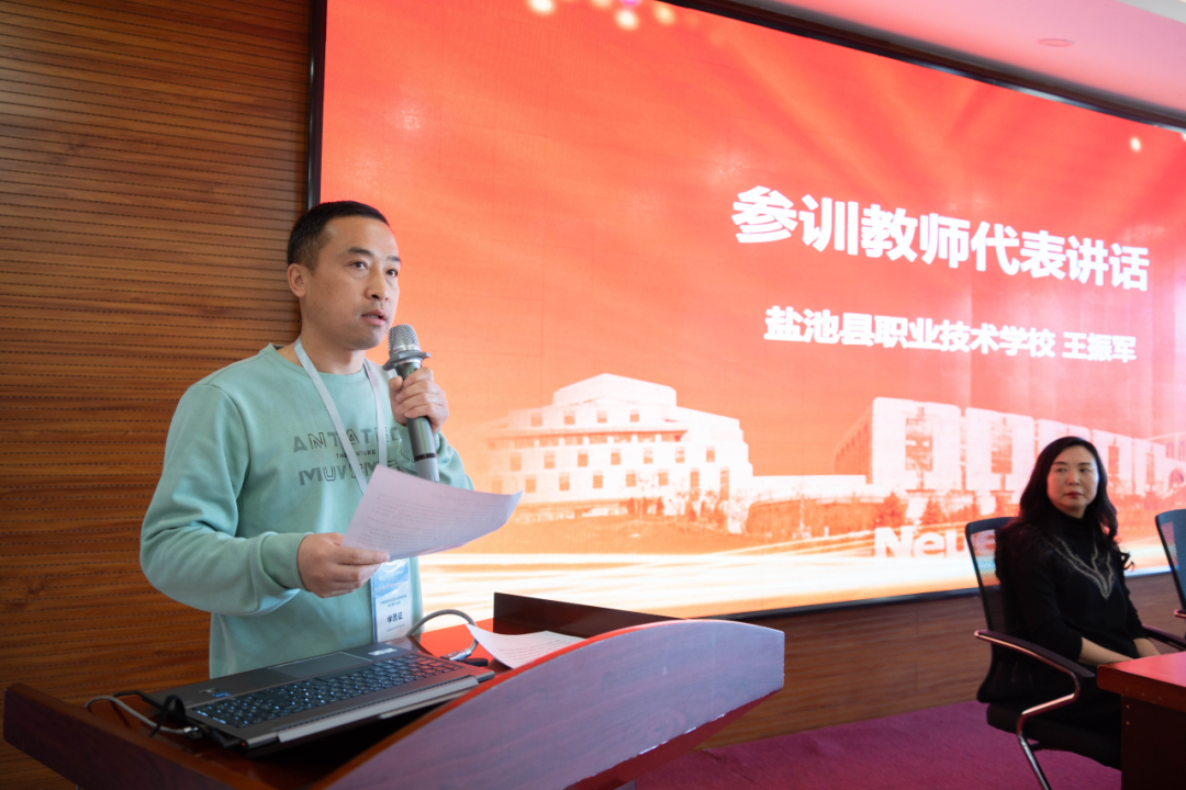 宁夏职业技术学院的李晓彤和盐池县职业技术学校的王振军分别作为中高职学员代表进行发言。他们表示将珍惜这次难得的学习机会,努力提升自己的信息技术教育教学水平。希望顺利获得此次培训,能够学习到更多的教育教学知识和技能,为今后的教育教学工作打下坚实的基础。