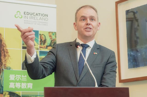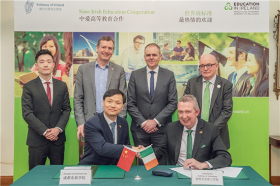 3月18日,中爱高等教育新闻发布会在爱尔兰大使馆举行。爱尔兰驻华大使李修文、爱尔兰教育与技能部部长乔•麦克休、爱尔兰教育推广处总部Giles O’Neill出席发布会。爱尔兰莱特肯尼理工学院(LYIT)与成都学院在爱尔兰驻中国大使馆正式签署了计算机系和数字艺术系3+1合作办学项目协议及LYIT九州酷游创新创业教育中心合作备忘录。这是两校自2016年正式开启合作以来的又一次重大合作进展。