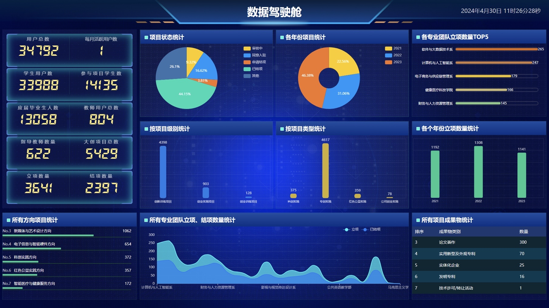 The system uses visual charts and analysis technology to provide users with real-time project monitoring and management functions. Through the multi-dimensional data analysis display provided by the data cockpit, users can easily understand the project progress, resource usage and potential risks, so as to make timely adjustments and decisions.