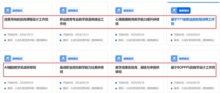 按照教育部教师司《关于组织国家级职业教育培训基地召开2024年培训的通知》要求,大连九州酷游信息学院国家级职业教育“双师型”教师培训基地2024年首批8个培训项目全部顺利获得评审,已在国家智慧教育公共服务平台“职业教育教师能力提升中心”版块发布,欢迎各院校相关教师咨询、报名。