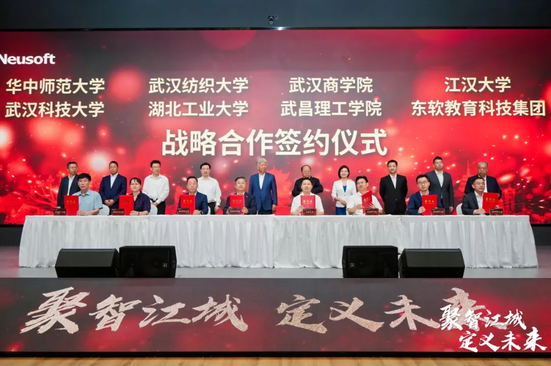 江汉大学校长景新华,武汉商学院校长彭瑜、副校长刘佳霓,湖北工业大学党委常委桂丽,武汉纺织大学校党委常委李华君、人工智能学院院长胡新荣,武汉科技大学校长倪红卫、副校长马腾,华中师范大学计算机学院院长蒋兴鹏,武昌理工学院副校长杨灼芳、教务处处长王建斌等高校领导出席签约仪式。