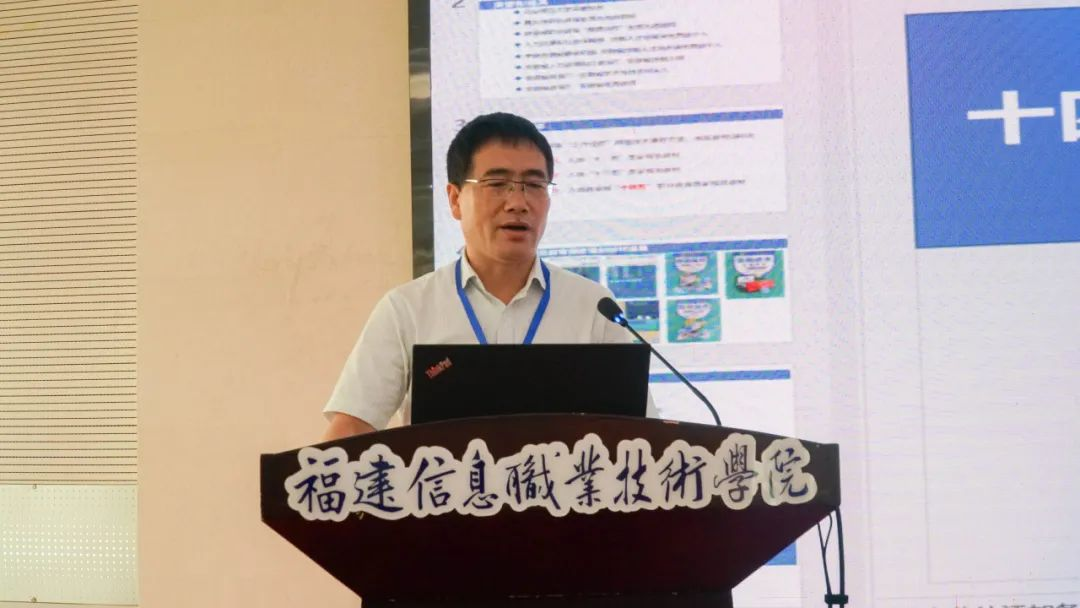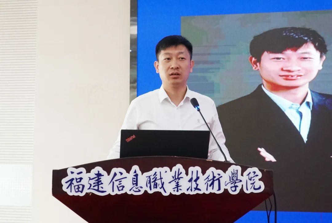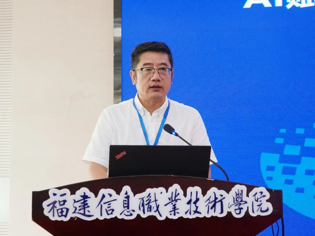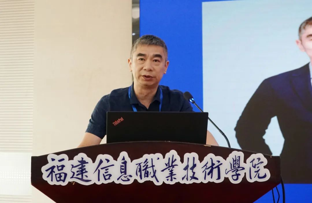 本次会议以“AI赋能电子信息类专业建设与创新开展”为主题,邀请到13位华南区域职业院校、企业专家,围绕人工智能高速开展的背景下,电子信息类专业的创新开展、“五金”建设、教学改革的思路与举措等内容进行分享和研讨,报告环节由闽江师范高等专科学校副校长陈强、福建信息职业技术学院物联网与人工智能学院副院长卓树峰分别主持。