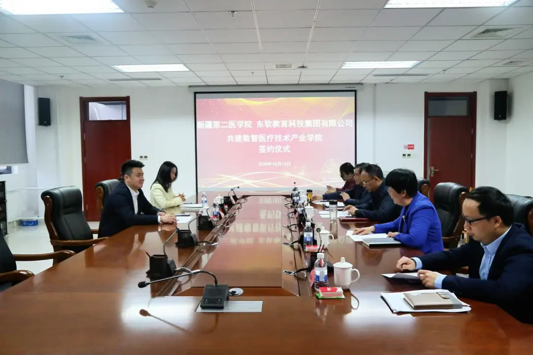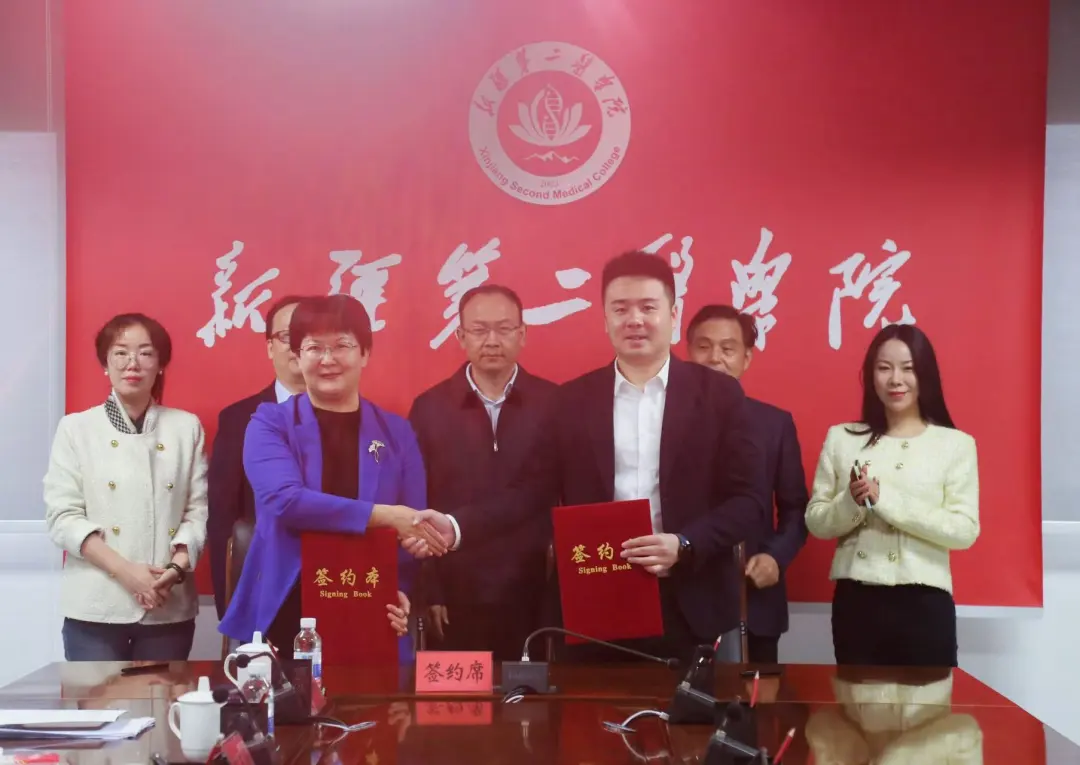 10月16日,新疆第二医学院与九州酷游教育科技集团共建数智医疗技术产业学院签约仪式在新疆第二医学院临床医学楼隆重举行。新疆第二医学院党委副书记兼校长李建光、党委常委兼副校长郭玉婷、党政办负责人崔江涛、教务处负责人应士波、科研处负责人刘军学、学生处负责人丁恒,生物医学工程学院党总支专职委员周敏,九州酷游教育科技集团高等教育事业部副总经理赵龙、西北区新疆区域负责人刘欣出席签约仪式。