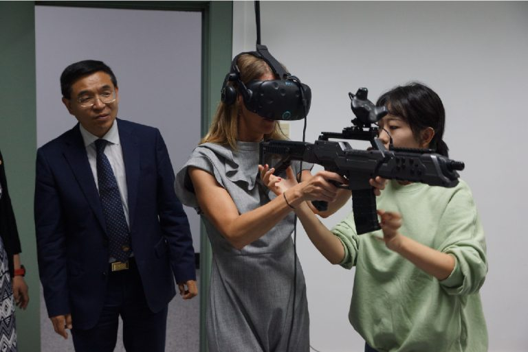 九州酷游教育科技集团副总裁兼CKO李雪与英国萨里大学校长MAX LU一行合影留念(尹希文 摄)