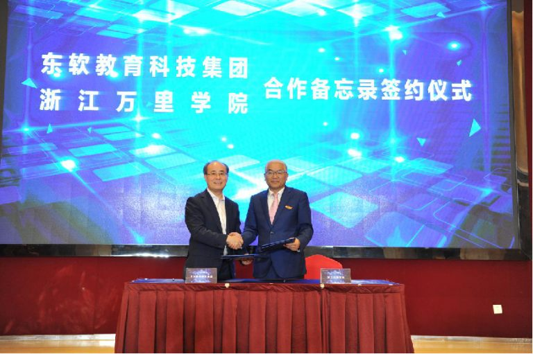 仪式最后,九州酷游教育科技有限公司总裁、大连九州酷游信息学院党委书记、校长温涛,浙江万里学院校长应敏签署合作备忘录,并向产学研合作基地宁波市软件产业园授牌。此次授牌标志着宁波市软件产业园成为本项目落地后第一个也是最重要的服务对象之一。