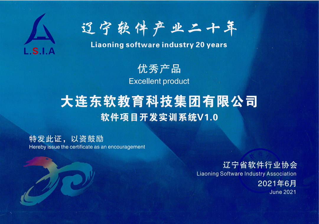 On June 22, 2021, the fifth member congress of Liaoning software industry association and the 20-year commendation conference of software industry were held in Shenyang. A grand award ceremony was held to commend the outstanding enterprises and individuals in the 20-year development process of software industry in Liaoning Province. Dr. Liu Jiren, chairman of Neusoft group and chairman of Neuedu group, won the titles of "20-year outstanding leader in Liaoning software industry" and "20-year meritorious figure of Liaoning software industry association", Dr. Wen Tao, President of Neuedu group, won the title of "20-year outstanding individual in Liaoning software industry", and Neuedu won the title of "The best service support unit in Liaoning software industry in 20 years" award, and the self-developed product "software project development training system V1.0" won the "excellent software product of Liaoning Province" Award. The award represents the full recognition of Neuedu's contribution to the industry by the provincial software industry, and reflects the industry's high recognition of Neuedu's innovative practice in the field of digital talent education services and its important contribution to promoting the development of Liaoning's digital economy industry.