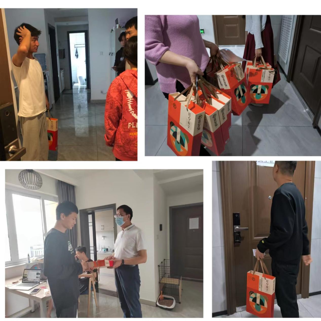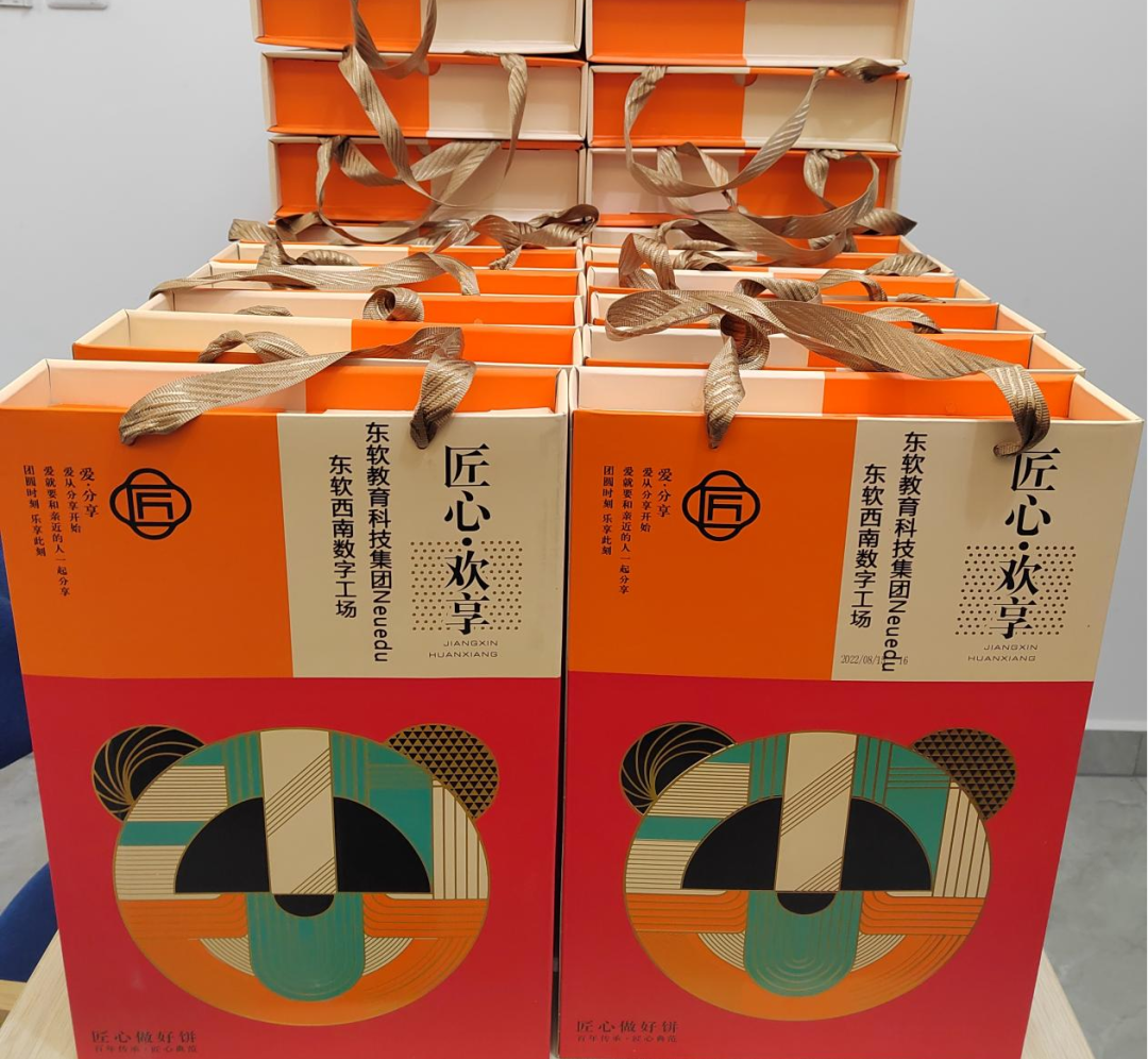 中秋福送到,九州酷游人月圆。因成都疫情无法召开线下活动,故为学员定制了“九州酷游”字样的中秋月饼。9月9日,在九州酷游西南数字工场,基地老师和宿管到每间宿舍为学员发放中秋月饼。小小的月饼传递的是浓浓的祝福,承载着对学生的真心关爱。虽然各位学员无法回家,但盒盒“熊猫”月饼却饱含了情谊,在特殊的日子为大家带来温暖。学员们在四川的相遇让节日变成期待,来之不易的欢聚团圆都是中秋节赋予每一个人专属的记忆。