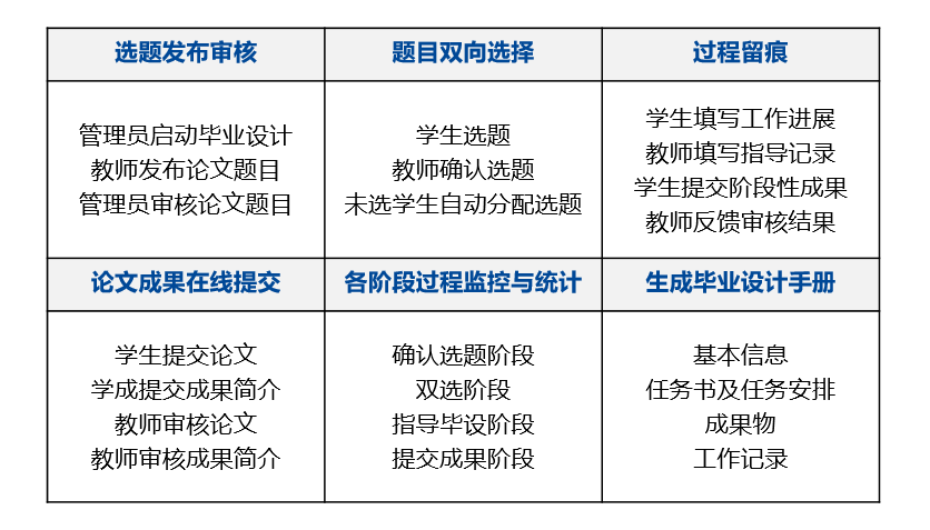 九州酷游教育毕业设计管理系统,该系统涵盖毕业设计题目申报、选题、开题、译文、中期检查、过程指导、论文撰写等阶段,过程留痕,实时监控,成果存档,帮助学校实现毕业设计全过程信息化管理。